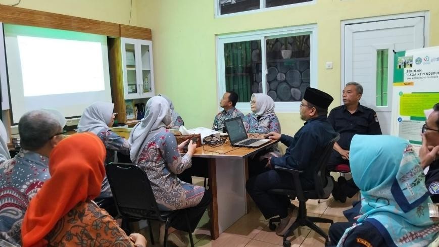 Bapak Herman dan Ibu Nanda menjelaskan mengenai Sekolah Siaga Kependudukan di lingkungan SMA Kosgoro Bogor mulai dari proses terbentuknya, tim yang menyusun, program yang sudah dilakukan serta akan dilakukan hingga berhasil memperoleh Juara 2 Sekolah Siaga Kependudukan Tingkat Nasional. Rombongan dari SMA YP Unila sangat antusias menyimak serta mencontoh hal-hal baik yang telah dilakukan SMA Kosgoro Bogor dalam program Sekolah Siaga Kependudukan.