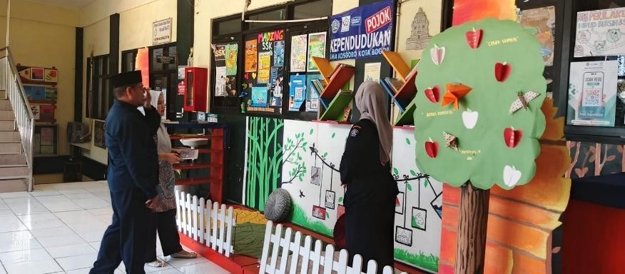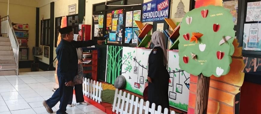 Saat berada di Pojok Kependudukan, Bapak Herman dan Ibu Nanda selaku guru Geografi dan bagian tim SSK SMA Kosgoro Bogor menjelaskan mengenai Pojok Kependudukan meliputi landasan dibangunnya Pojok Kependudukan, proses dibangunnya, karya-karya yang disimpan hingga manfaat dari Pojok Kependudukan. Bapak Herman serta Ibu Nanda menjelaskan bahwa Pojok Kependudukan merupakan salah satu bentuk komitmen SMA Kosgoro Bogor dalam menerapkan muatan kependudukan di lingkungan sekolah.