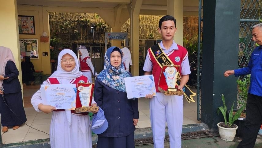 Gambar Apresiasi Terbaik 1 Putra Duta Kependudukan Kategori SMA Sekolah Siaga Kependudukan Tingkat Kota Bogor Tahun 2025, Radit dan Tadya